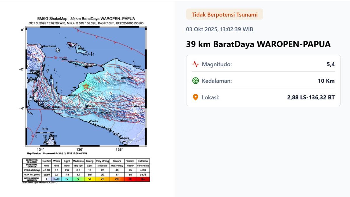 Rincian Gempa Pertama di Waropen, Papua