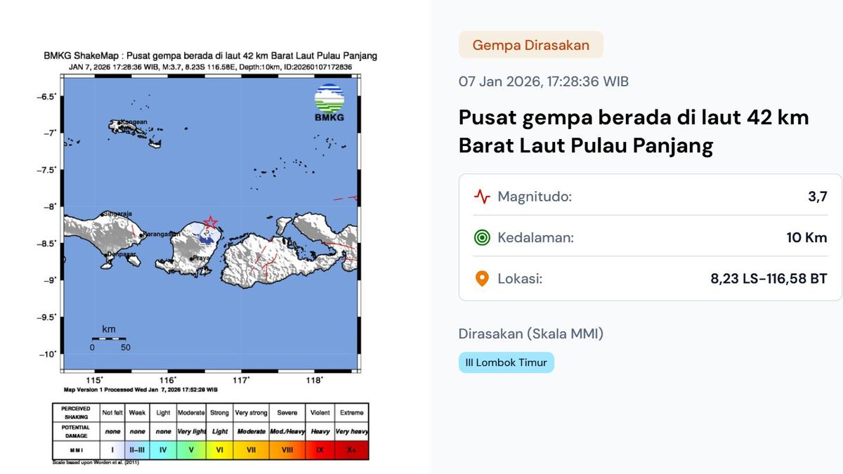 Pusat gempa berada di laut, sekitar 42 kilometer barat laut dari Pulau Panjang. Getaran ini dirasakan khususnya di daerah Lombok Timur dengan tingkat intensitas MMI III, menunjukkan dampak yang signifikan.