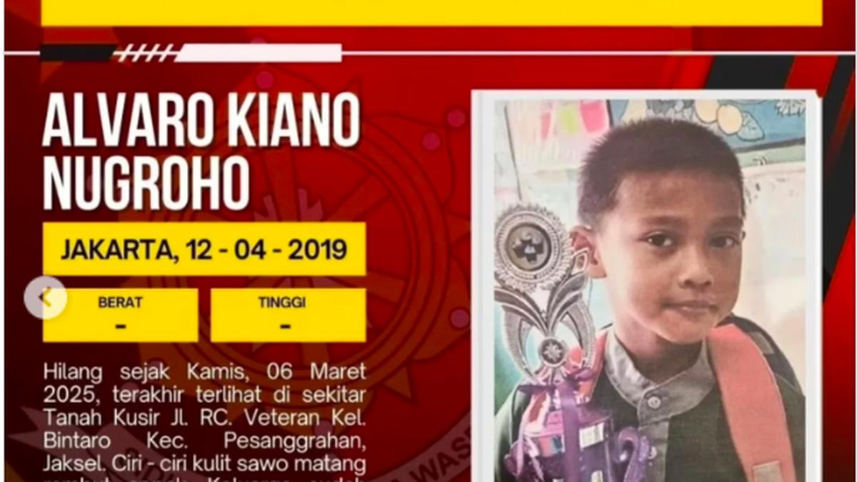 Misteri hilangnya Alvaro Kiano Nugroho, seorang bocah berusia enam tahun dari Pesanggrahan, Jakarta Selatan, yang menghilang sejak 6 Maret 2025, akhirnya terpecahkan. Selama delapan bulan dilakukan pencarian tanpa hasil, polisi akhirnya menemukan kerangka manusia yang diduga kuat merupakan Alvaro, mengungkap fakta tragis bahwa dia adalah korban penculikan dan pembunuhan ayah tirinya sendiri.