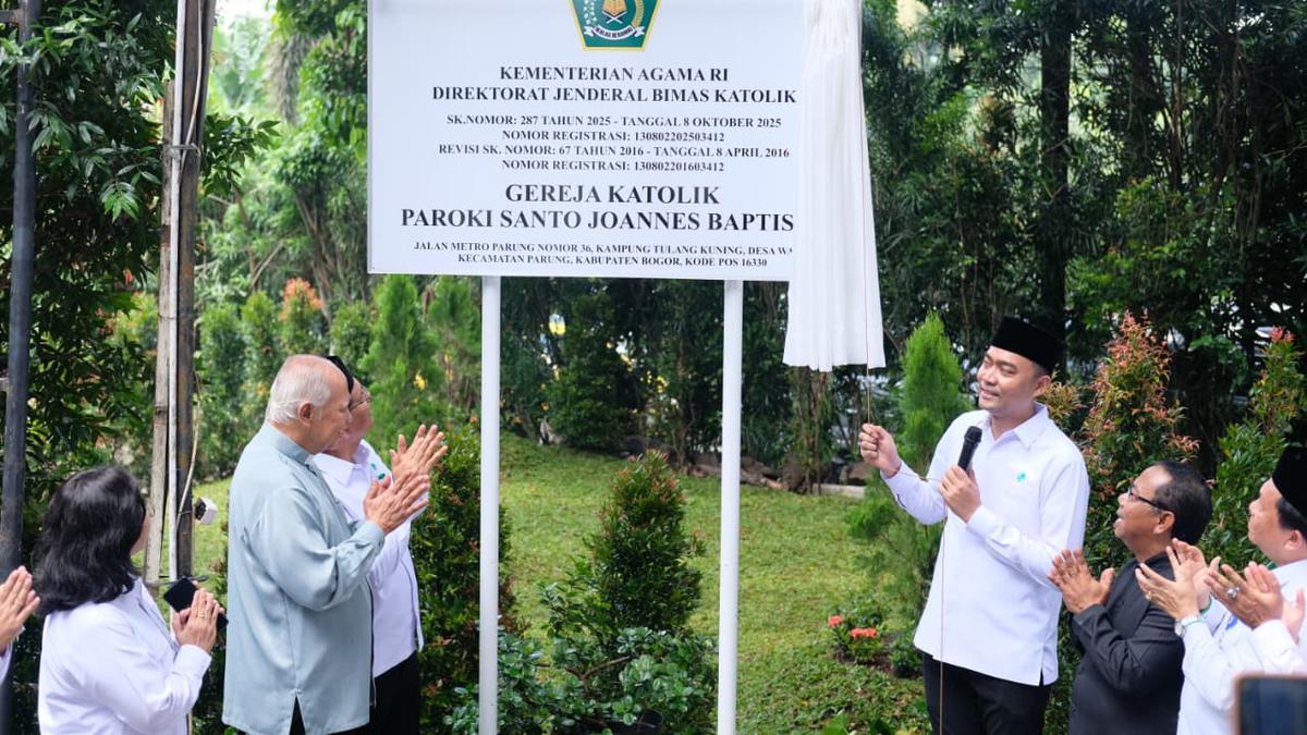 Pemasangan papan nama tersebut dilakukan oleh Staf Khusus Menteri Agama, Gugun Gumilar, dan dihadiri oleh berbagai pejabat penting, termasuk Direktur Jenderal Bimbingan Masyarakat Katolik. Hadir pula Pembimas Katolik Provinsi Jawa Barat dan Kepala Kantor Kementerian Agama Kabupaten Bogor, menegaskan dukungan pemerintah terhadap pelayanan keagamaan yang inklusif.