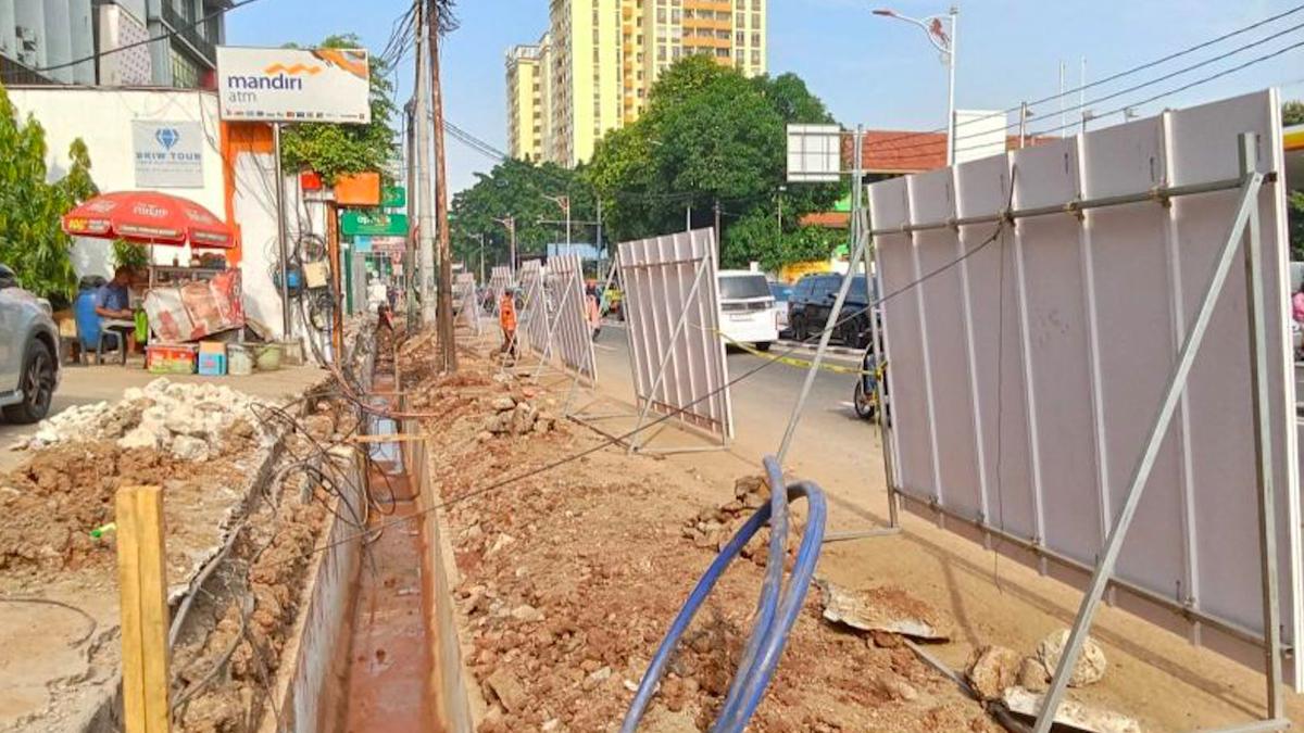 Proyek drainase yang tengah dikerjakan membentang sekitar 150 meter, mulai dari pertigaan Jalan Pos Pengumben Dalam hingga depan SDN Kelapa Dua 06. Lokasinya terletak di sisi jalan dari arah Kebayoran Lama menuju Joglo, yang kini menjadi satu jalur dengan mayoritas kendaraan melintas.